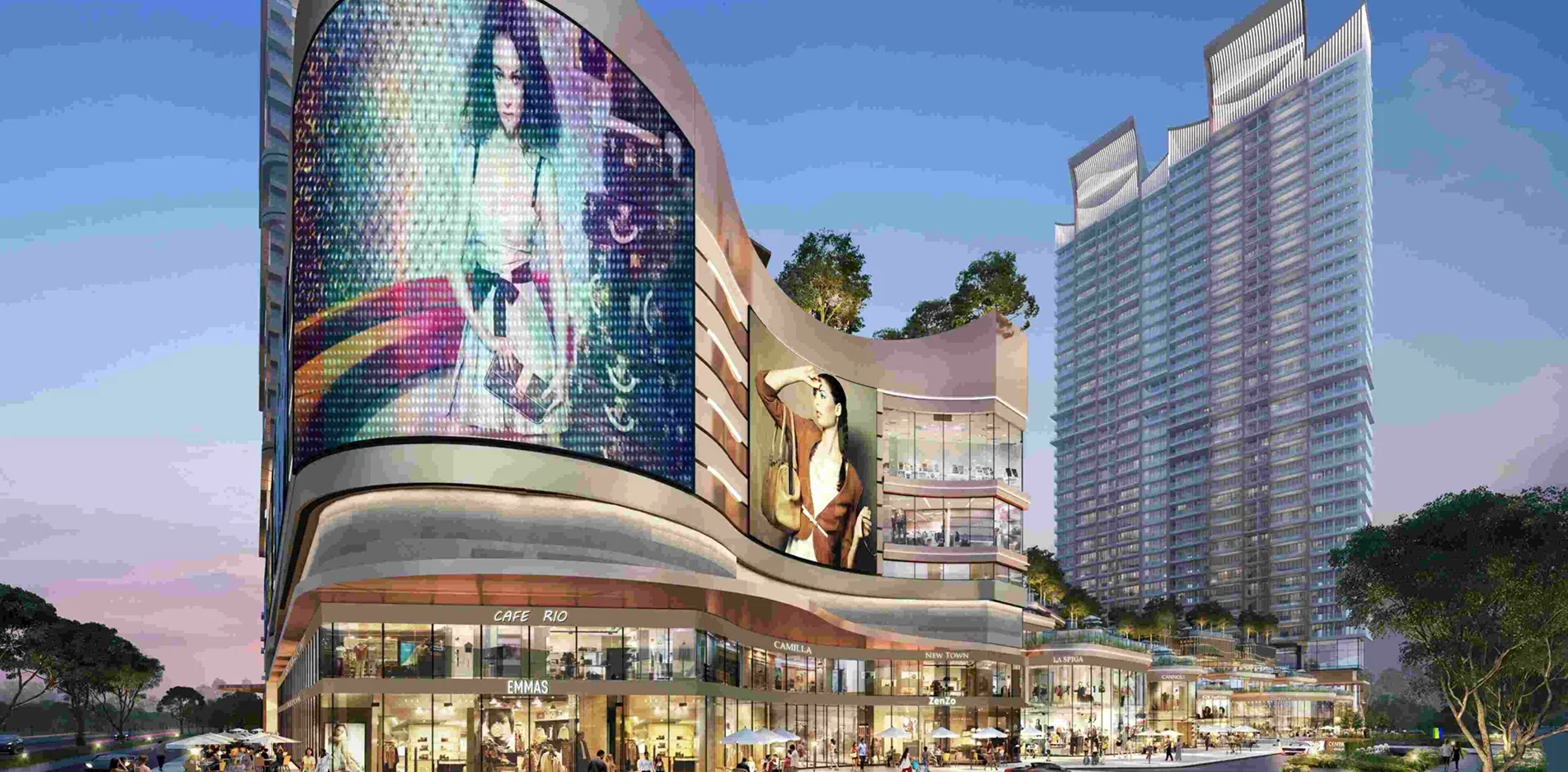 Centralized landscape plaza for Hi-street retail experience
